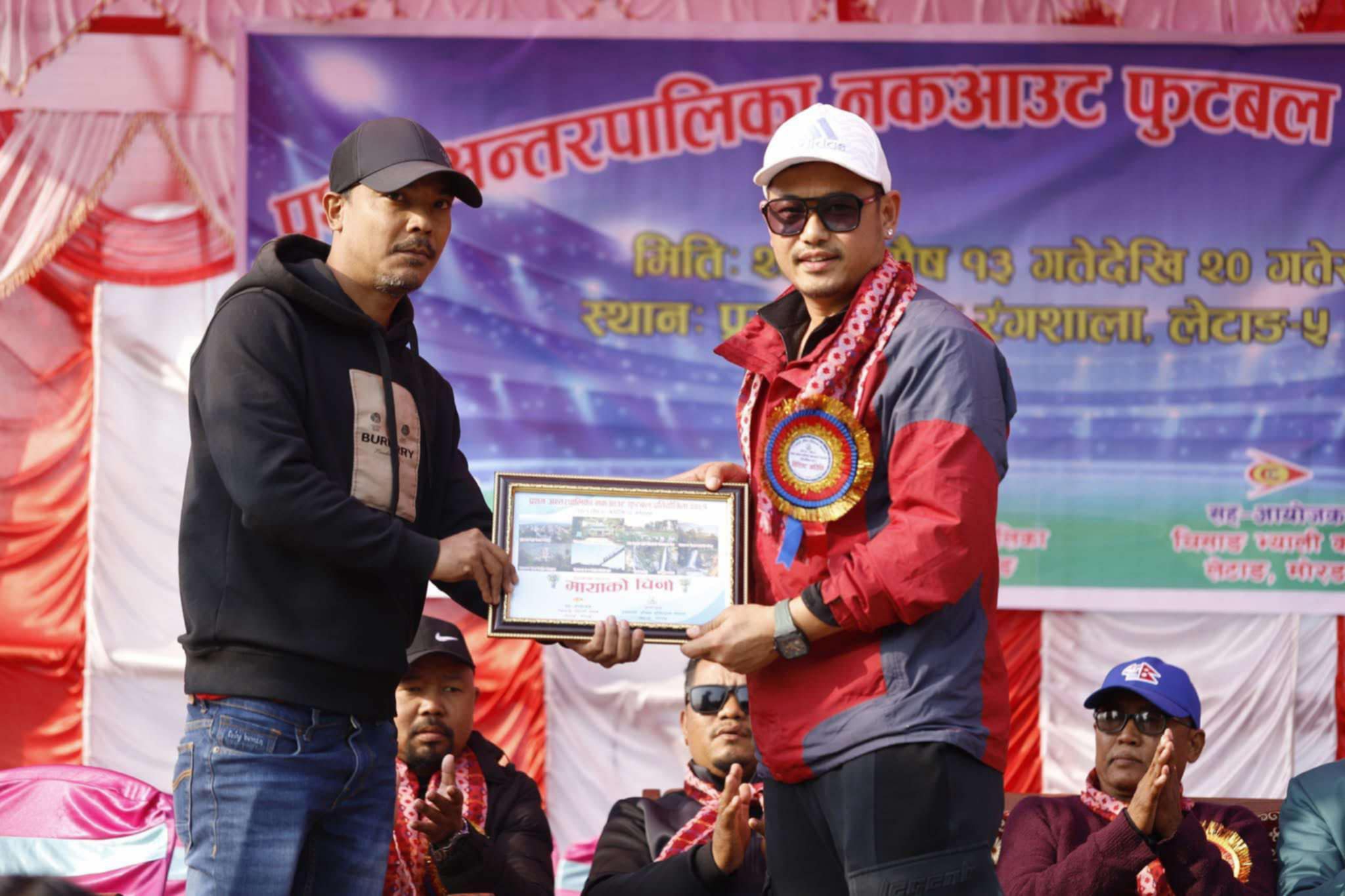 नगरप्रमुख मोहन प्रसाद तुम्वापोले फाइनल खेलको लागि शुभकामना व्यक्त गर्दै यस्तो प्रतियोगिताले नगरस्तरमा खेलकुदको विकास र प्रतिभाको पहिचानमा सहयोग पुग्ने बताउनु भयाे ।