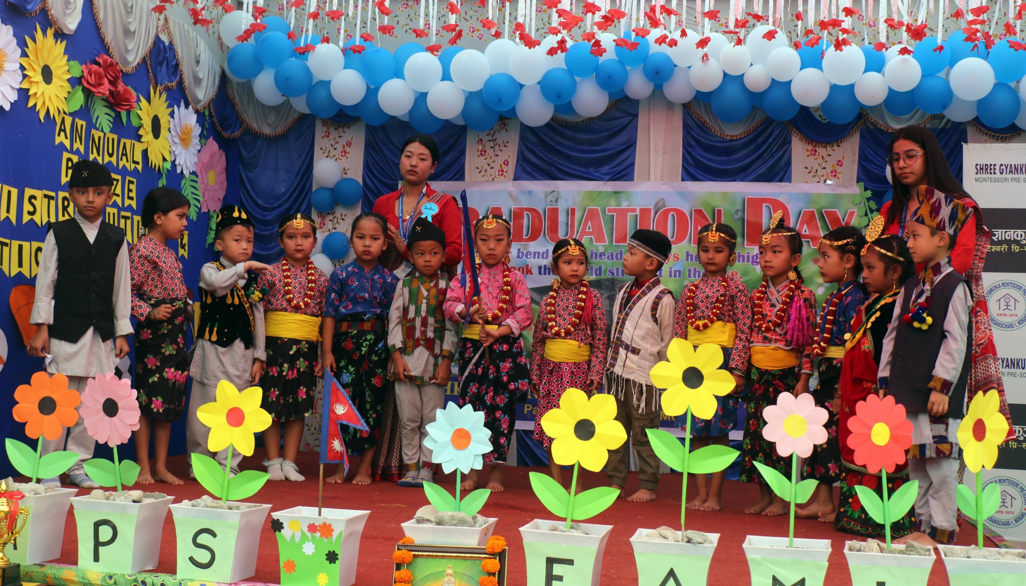 कार्यक्रममा विद्यालयमा अध्ययनरत वालवालिकाहरूले रमाइला प्रस्तुति दिएका थिए । र्याम्स, नृत्य, गायन र स्पिचजस्ता गतिविधिहरूका साथ उनीहरूले ‘साना साना आँखा तर’, ‘रैयाँ चादिँको’, ‘दुस्मन हेरेको हेरै’ र ‘पानी मिठो मेरो हजुर’ लगायतका गीतहरूमा आकर्षक नृत्य प्रस्तुत गरेका थिए ।