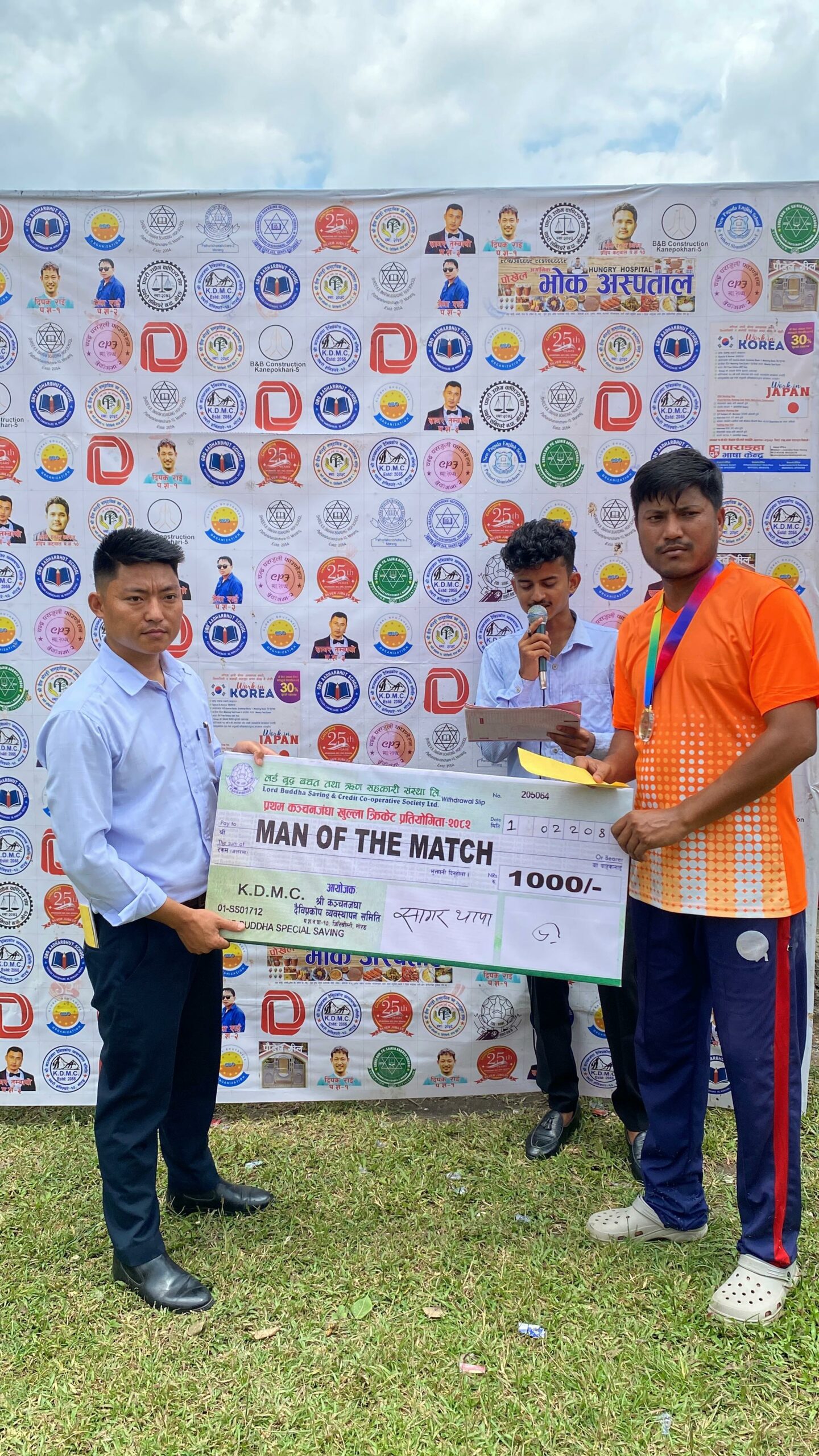 कञ्चनजंघाका ज्ञानेन्द्र श्रेष्ठले ३ विकेट लिए भने नुरी निशार, सुरज न्यौपाने र अभिषेक लिम्बूले समान २/२ विकेट लिए। ११८ रनको लक्ष्य आयोजकले १३.३ ओभरमा ५ विकेट गुमाएर पूरा गर्यो। सुरज न्यौपानेले उत्कृष्ट प्रदर्शन गर्दै ७९ रनको अर्धशतकिय पारी खेले। पथरीशनिश्चरेका नेल्सन दंगालले ३ विकेट लिए भने सुदीप चौधरी र दीपेश भण्डारीले समान १/१ विकेट लिए। सुरज न्यौपाने ‘म्यान अफ द म्याच’ घोषित भए।
