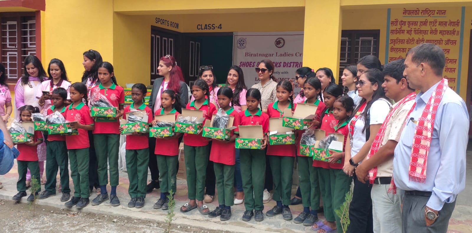 विराटनगर / सामाजिक उत्तरदायित्व अन्तर्गत बिराटनगर लेडिज सर्कल ५ (BRTLC 5) ले बिराटनगर माहानगर पालिका वडा न. ५ को श्री सिद्धकाली आधारभूत”विद्यालयका जीर्ण २ वटा कक्षा कोठाहरू पुनःनिर्माण गरी आज औपचारिक रूपमा हस्तान्तरण गरेको छ। साथै विद्यार्थीहरूलाई जुत्ता र पौष्टिक खाजाको वितरणसमेत गरिएको उक्त कार्यक्रम MEGA PROJECT अन्तर्गत साउन १ गते (१७ जुलाई २०२५) विद्यालय परिसरमै सम्पन्न भएको हो।