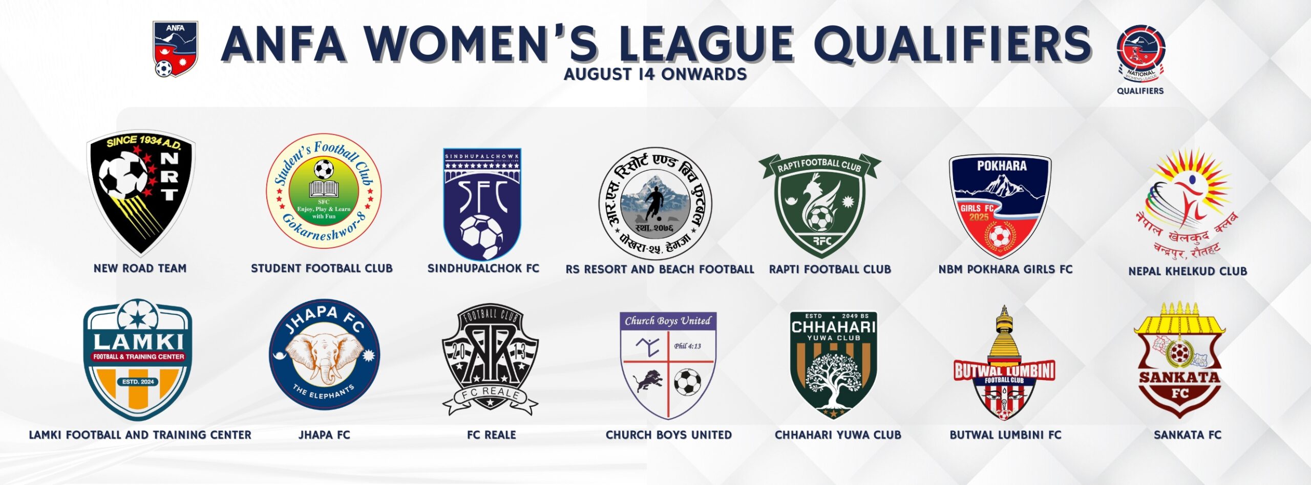 काठमाडौं / अखिल नेपाल फुटबल सङ्घ (एन्फा) महिला लिग छनोटमा आज ४ टोली भिडदैँछन् । आजको पहिलो खेलमा राप्ती एएफसी र सिन्धुपाल्चोक रिसोर्ट एन्ड बिच फुटबल बिचमा पहिलो खेल हुदैँछ । जुन खेल अपरान्ह १२ः३० बजेवाट सुरू हुनेछ ।