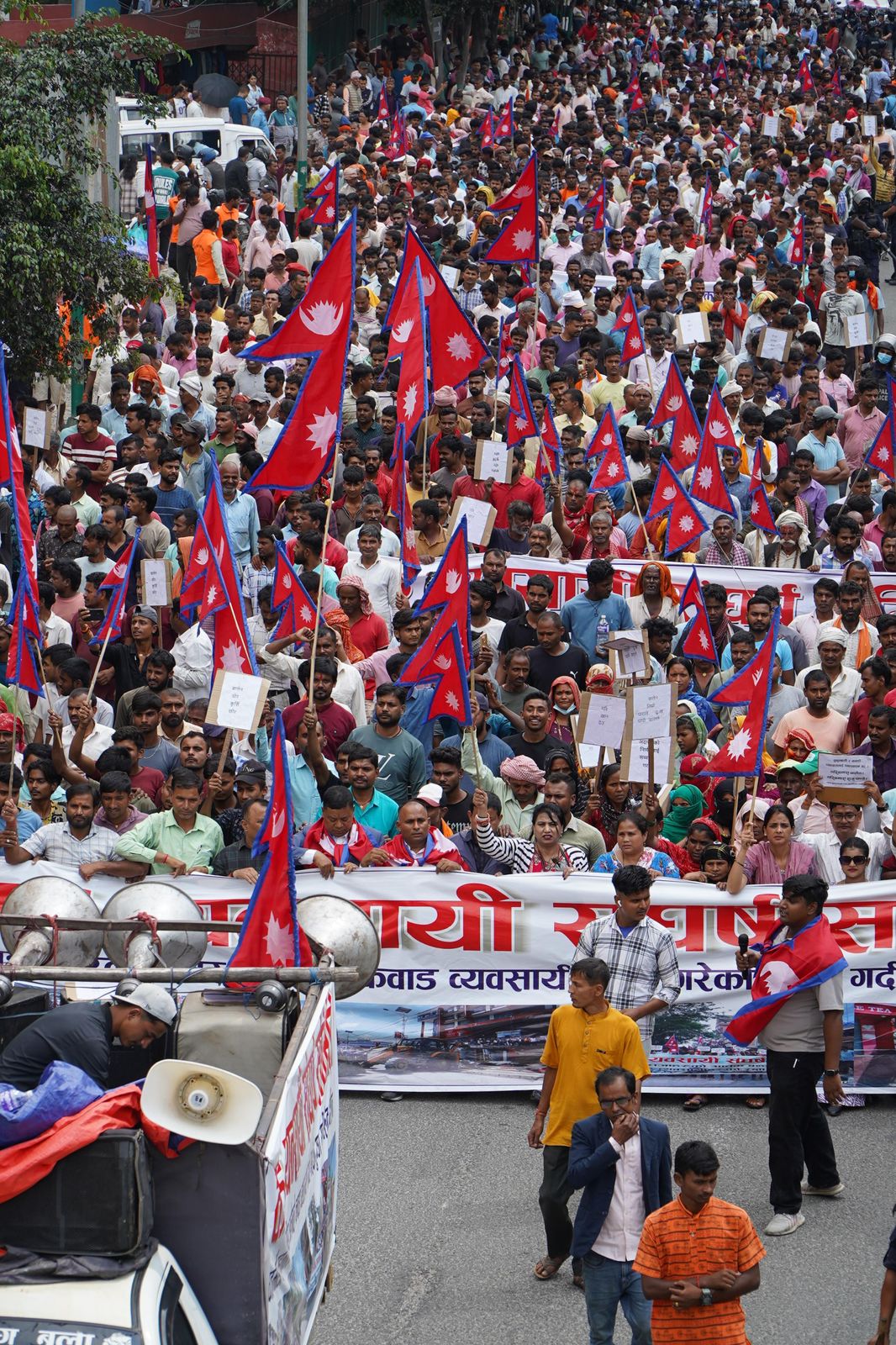 काठमाडौं / काठमाडौं महानगरपालिकाको ज्यादतीबिरुद्ध कबाड व्यवसायीले आज (बुधबार) तेस्रो दिन पनि आन्दोलन जारी राखेका छन् । भृकुटीमण्डपबाट शुरु भएको कबाड व्यवसायीको प्रदर्शन कमलादी स्थित काठमाडौं महानगरपालिकाको कार्यालय समेत घेराउ गरेको छ ।